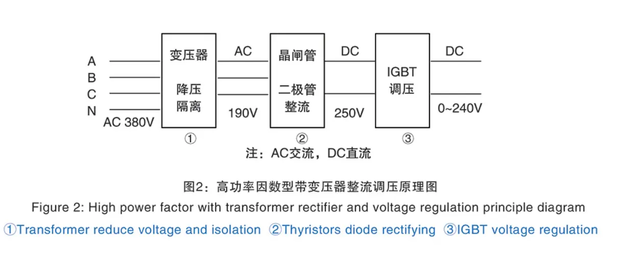 1. Clasificat prin reglarea tensiunii de redresare: tiristoarele (SCR) pot fi utilizate pentru a finaliza rectificarea și reglarea tensiunii simultane, sau mai întâi utilizați redresarea diodei sau tiristoarele și apoi utilizați tensiunea de reglare IGBT. Utilizați tensiunea de reglare IGBT este pentru a îmbunătăți factorul echipamentului. Poate economisi energie electrică și îmbunătăți în continuare calitatea sudurii.